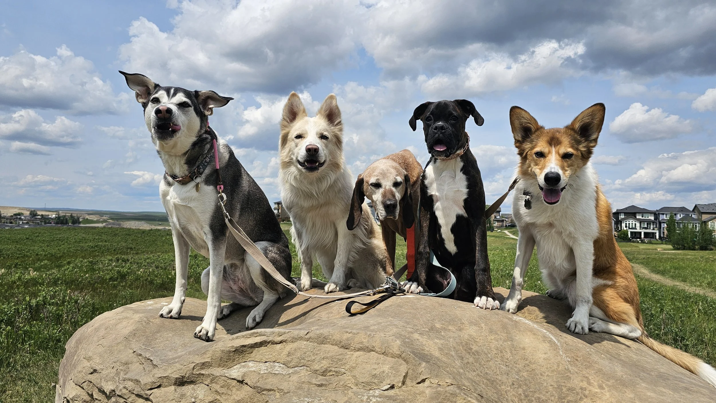During our Board & Train program, your dog will come live with me in my home, where we’ll work one-on-one using balanced training methods to meet your pup’s specific needs and goals. This immersive environment allows your dog to learn how to live more comfortably and confidently in our human world. Throughout the program, your dog will participate in real-life outings such as walks, park visits, coffee shop trips, car rides, backyard time, and more—offering valuable exposure and practical experience.